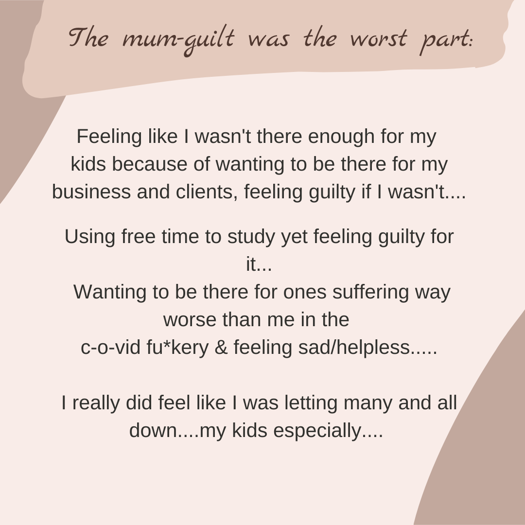 ~Is loaded with mum-guilt! Because her energy & vitality are shot & playing with the kids seems too much effort.