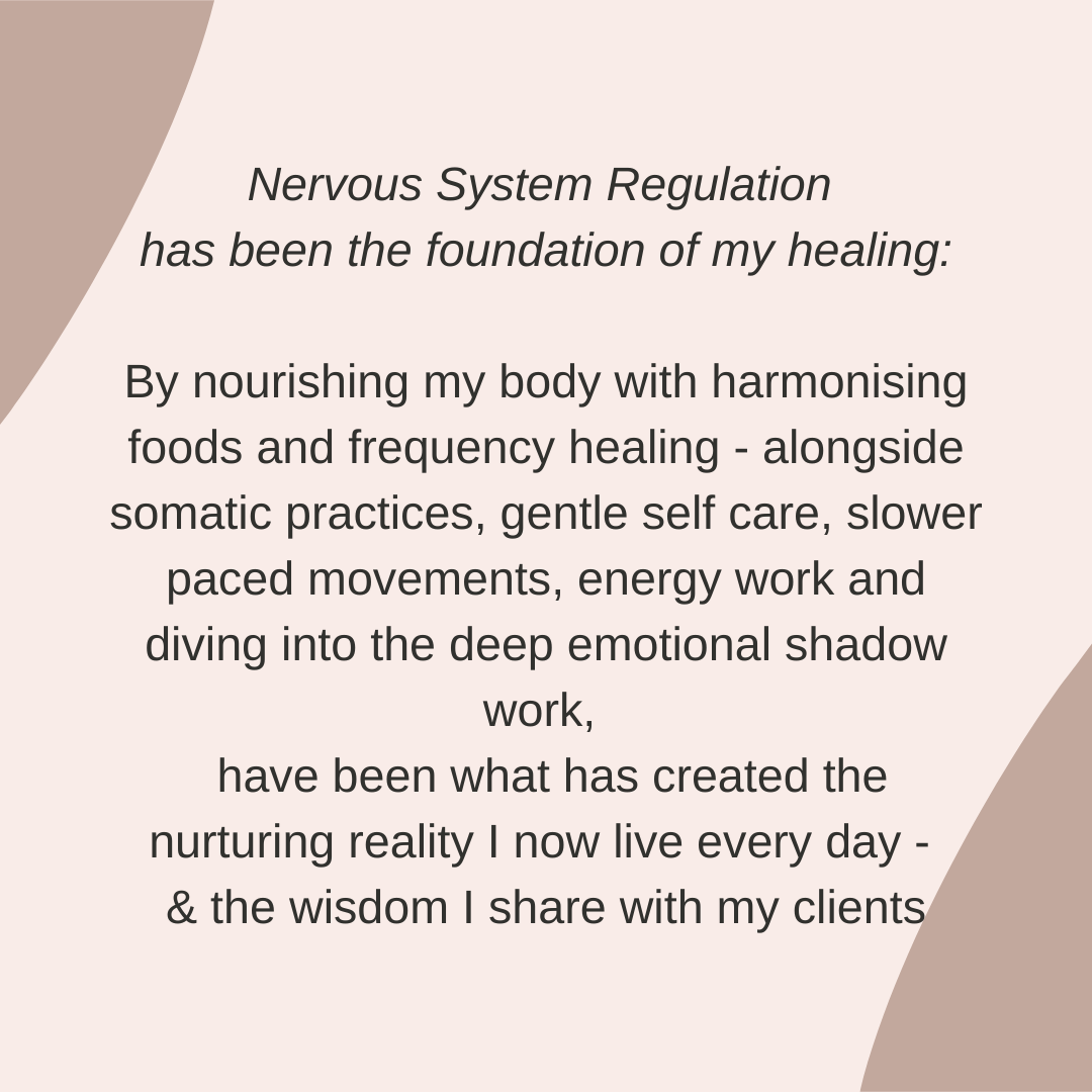 Using unique guided processes I'll take you through; designed to gently release unresolved emotions, unravel the symptoms & stress that are driving your health problems and reprogram the bodies healing responses - along with somatic practices & nervous system education - you'll learn how to rebuild resilience, restore balance & reawaken your bodies natural healing, regulating abilities.